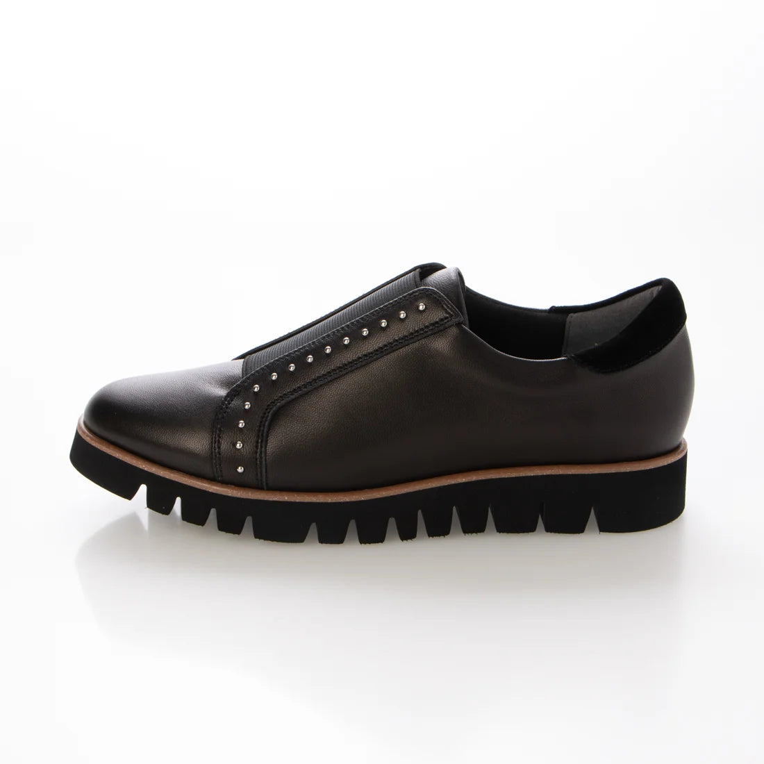 ●スタッズをあしらい華やかなアクセントを添えたスリッポンスニーカー